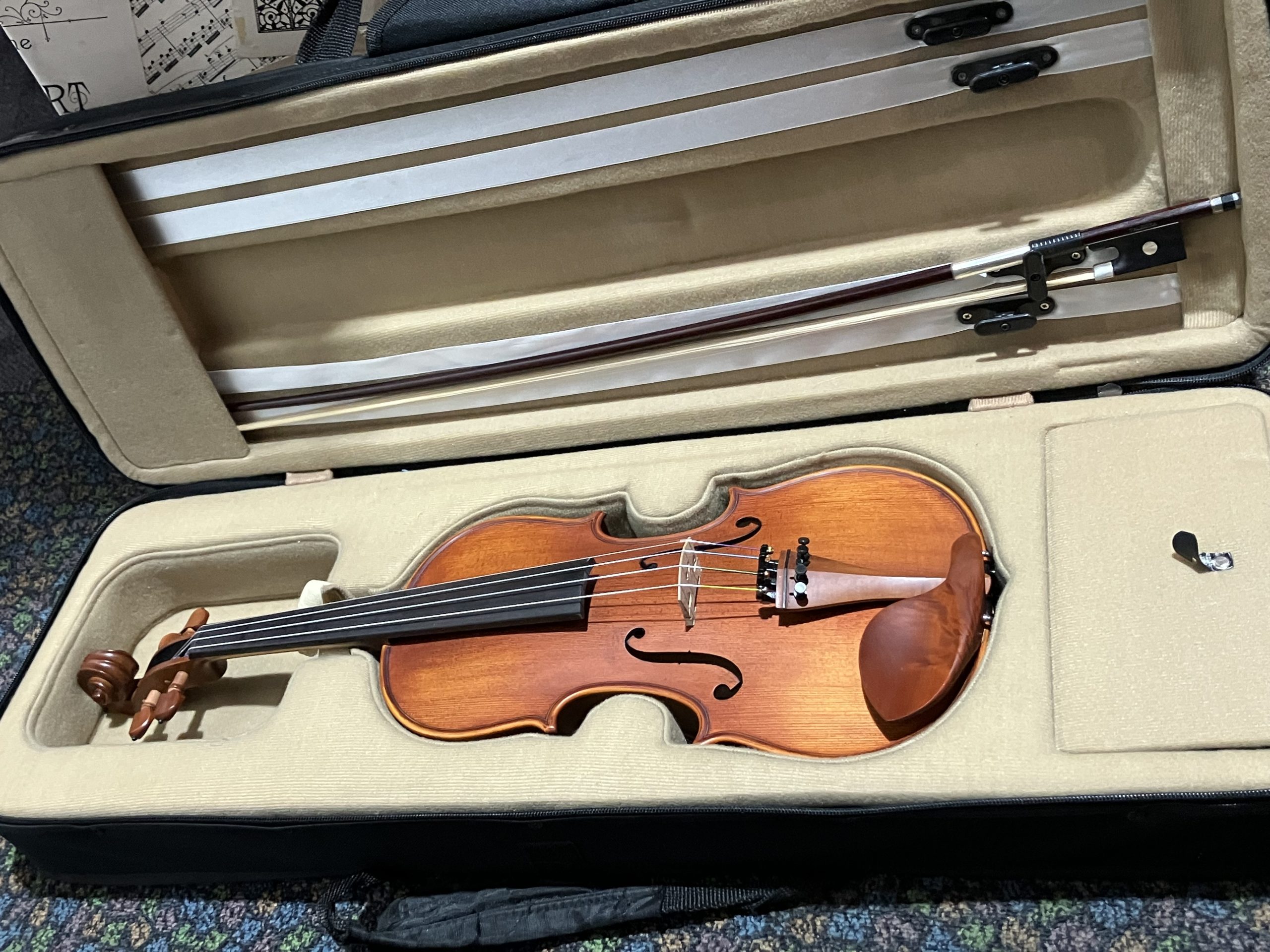 Reconditioned and professionally set up and adjusted for correct playing by our in-store violin repairer.